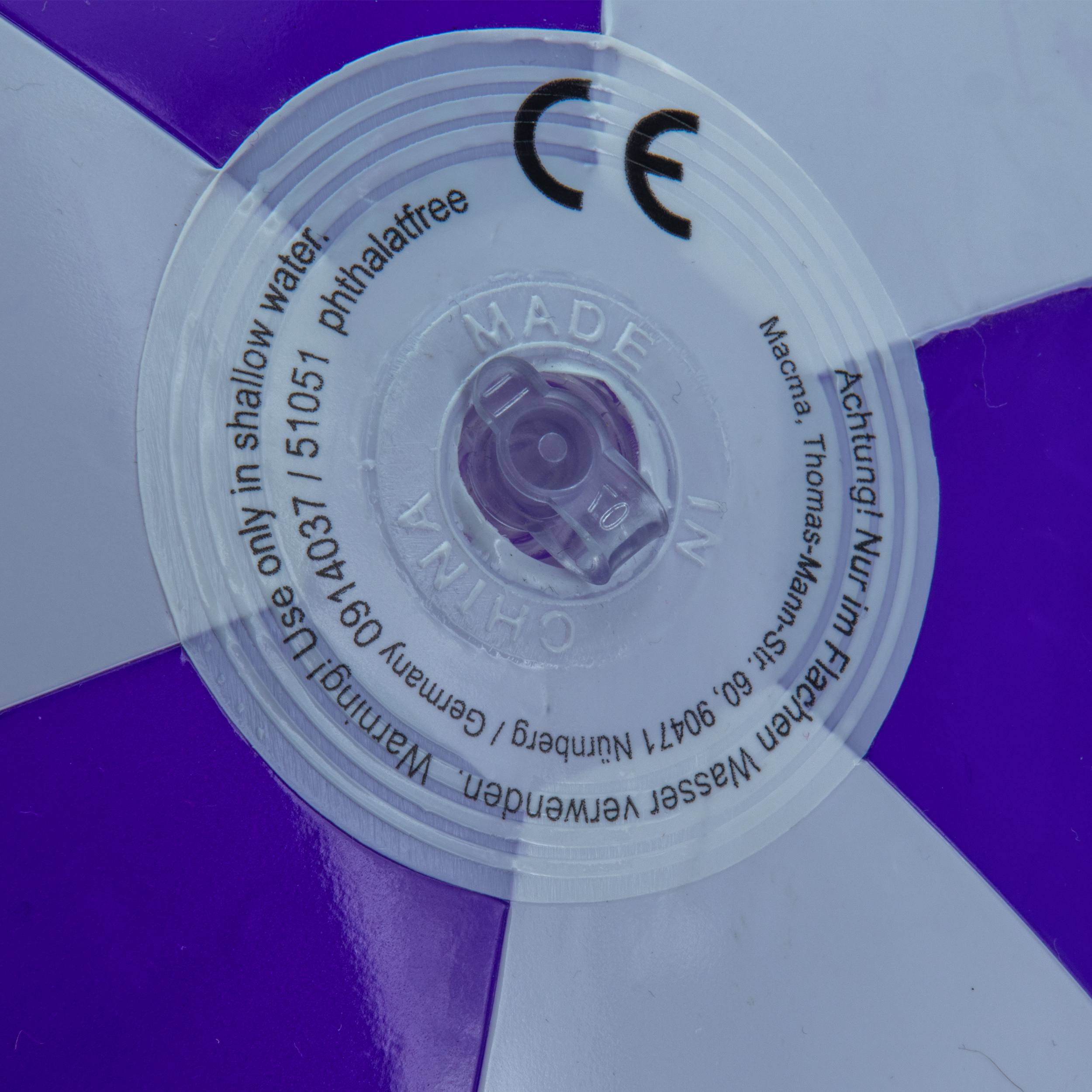 Bicoloured inflatable beach ball made of PVC with a segment length of 40 cm. The beach ball is PHTHALATE-FREE.