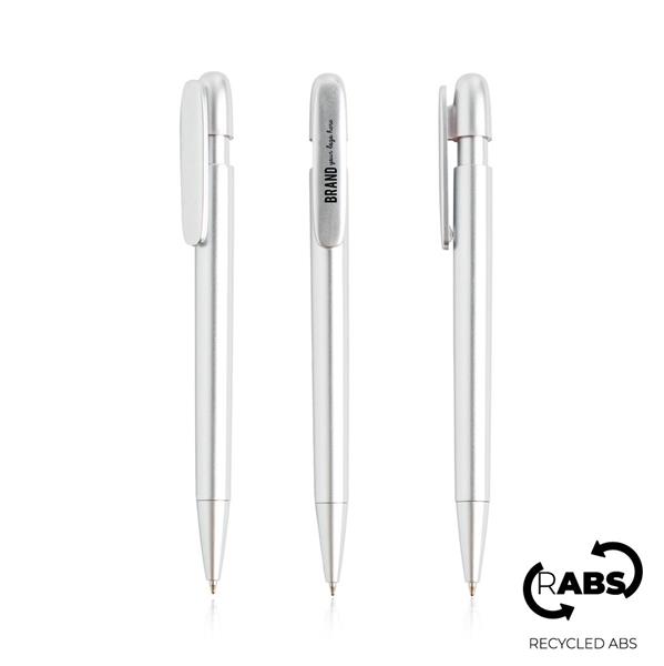 Ballpoint in recycled ABS. Push ballpoint pen in recycled plastic, with wide clip. This blue writing ballpoint pen is the ideal choice for a useful and environmentally friendly gift!