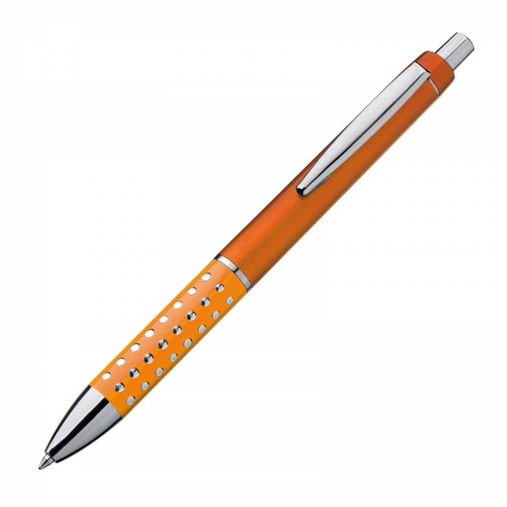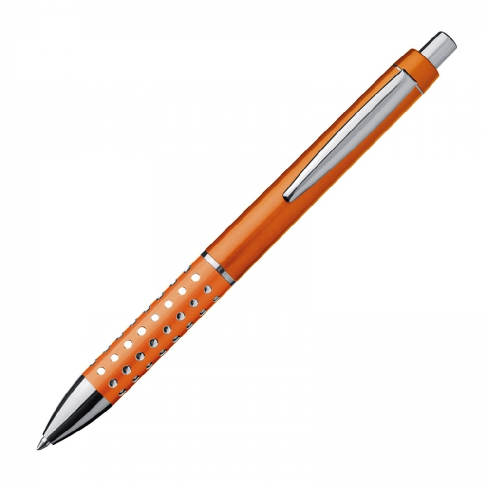 Kugelschreiber aus Kunststoff mit glitzernder, rutschfester Griffzone und blau schreibender Großraummine. Ihre Werbung drucken wir auf den Schaft.