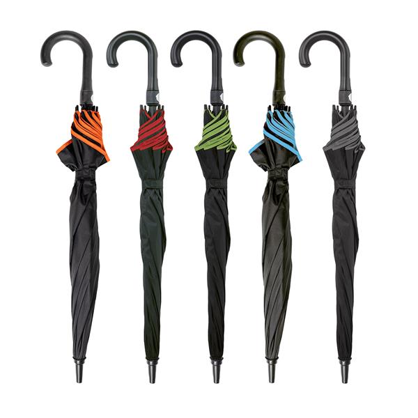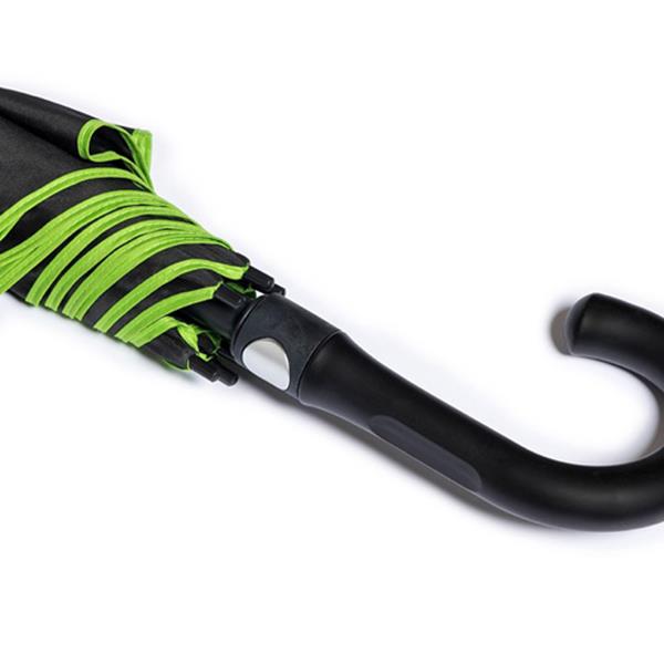 Automatic umbrella, in Pongee 190T, colored fiberglass rods. An umbrella with automatic opening. The contrast between the black P-190T and the colored rods make it a much more interesting and appealing gift. Dont be caught off guard and stand by your customers through all of lifes storms.