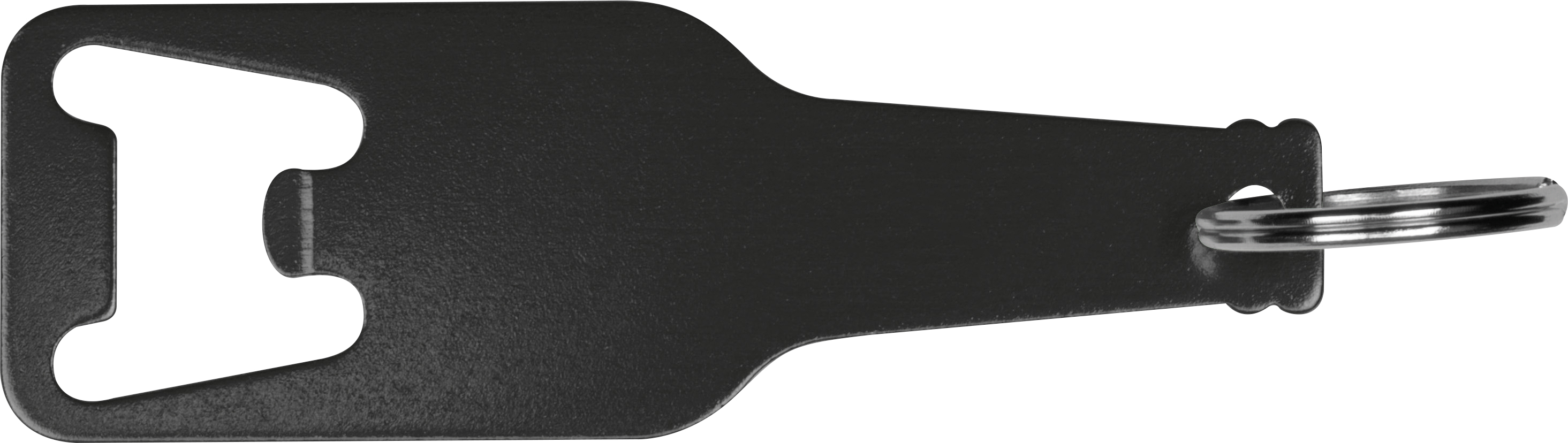 Bottle opener made of recycled aluminium including a key ring. We will laser engrave your logo on the pendant.