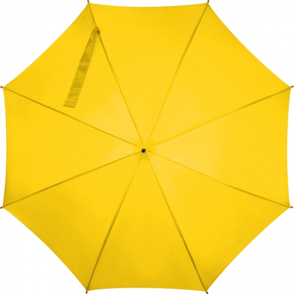 Automatic umbrella with bended wooden handle and wooden tips.