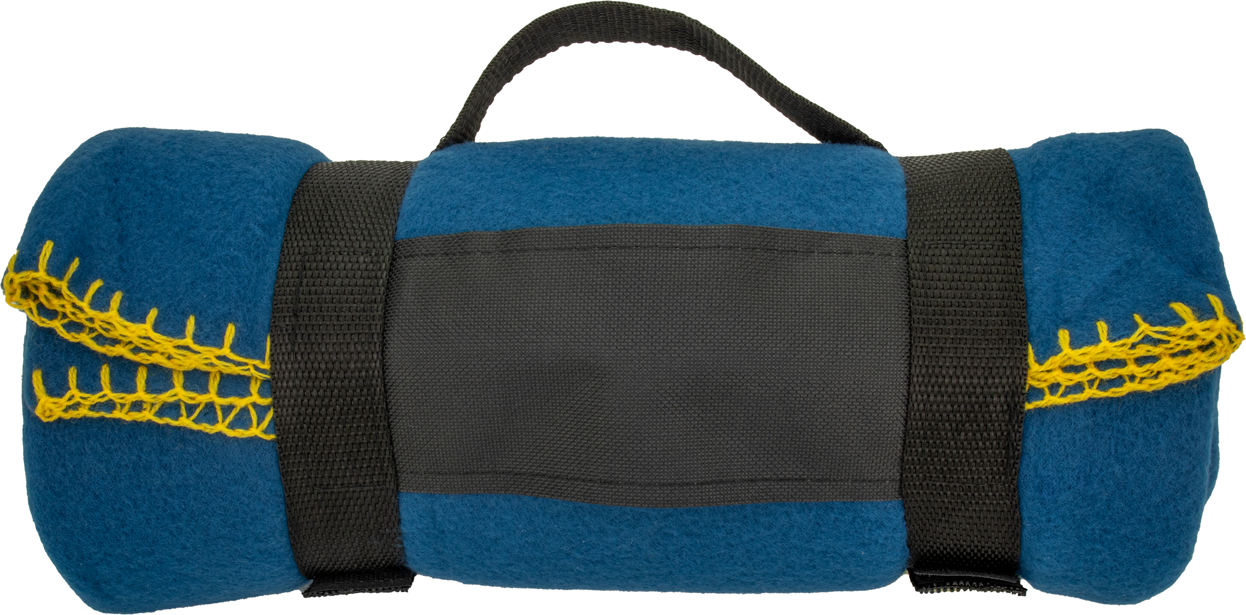 Large comfortable and cosy fleece blanket with handy carrying strap and fancy stitching.We will print your logo on the carrying strap or stitch it to the blanket.