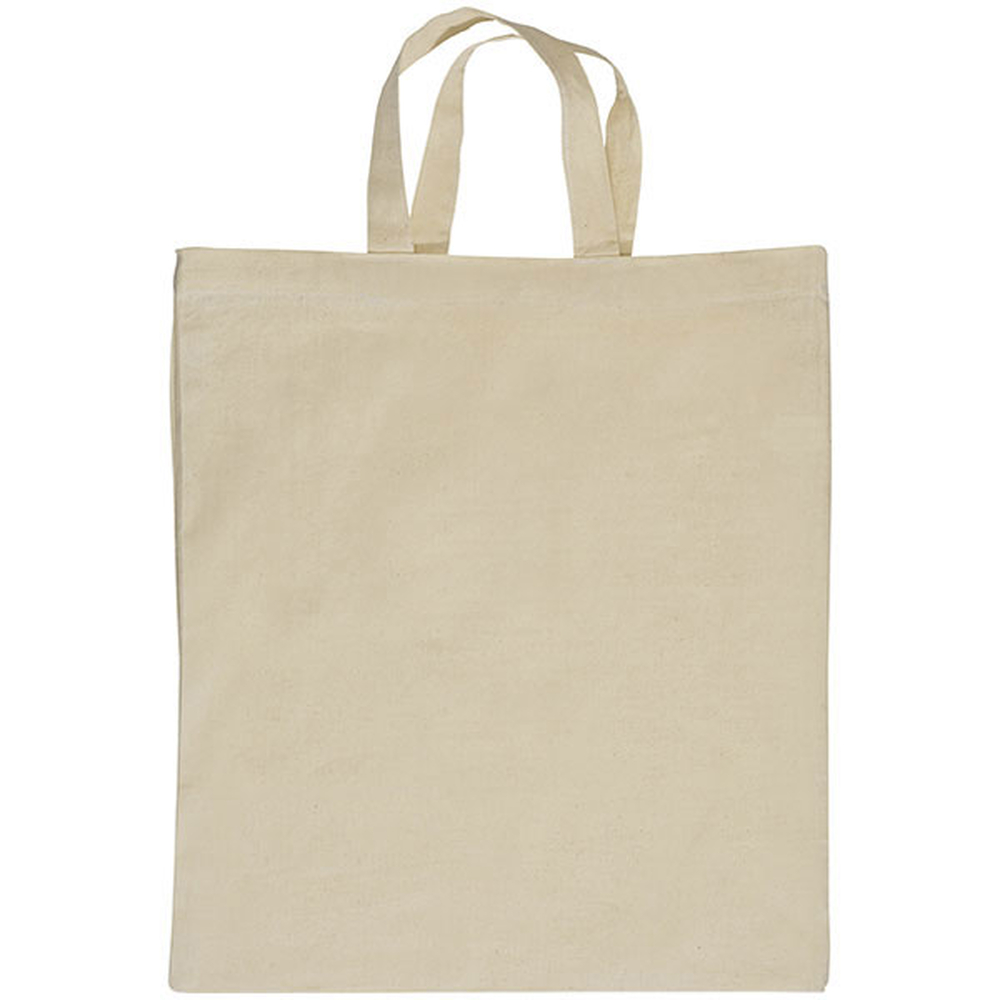 Natural-coloured, environmental friendly cotton bag with two short handles (ca. 33 cm, grammage 125g/m2).