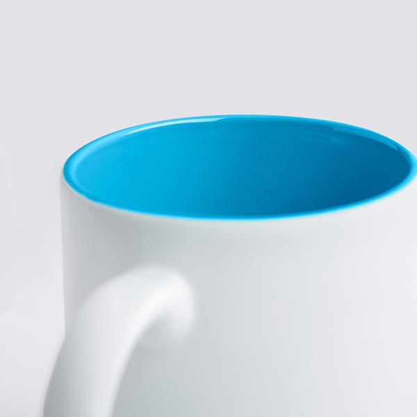Ceramic mug, Matte Popmug with a capacity of 325ml, white exterior with a touch of rubber and interior in different colors. This mug is great for laser personalization as the engraving comes out in color. It is not suitable for use in the microwave. 325 ml capacity. White gift box.