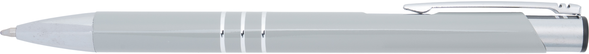Fully lacquered metal ballpen with 3 decorative rings and blue-writing refill with large capacity. Your logo will be engraved to the right of the clip.