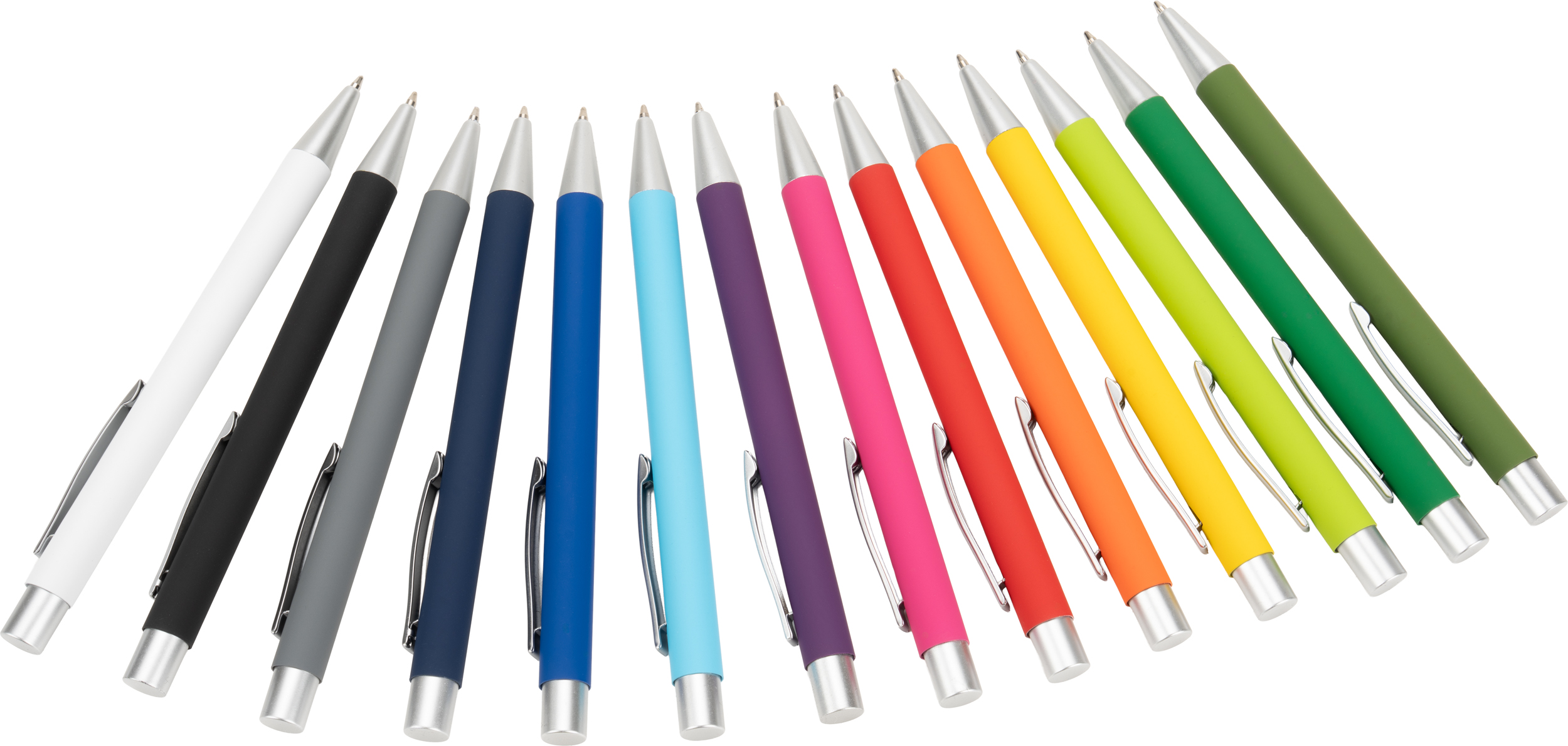 Metal retractable ballpoint pen with rubber finish surface and large capacity blue ink refill. We laser your logo on the right side of the clip on the barrel.