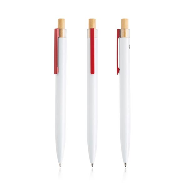 Pen in recycled aluminum, detail in bamboo. Made of recycled aluminum of waste and end of life, using melting and harvesting processes. By buying this ballpoint pen, you are helping to reduce carbon releases and reduce the waste that comes from non-reuse. This blue writing sporographic also has a bamboo click, following market trends._x000D_