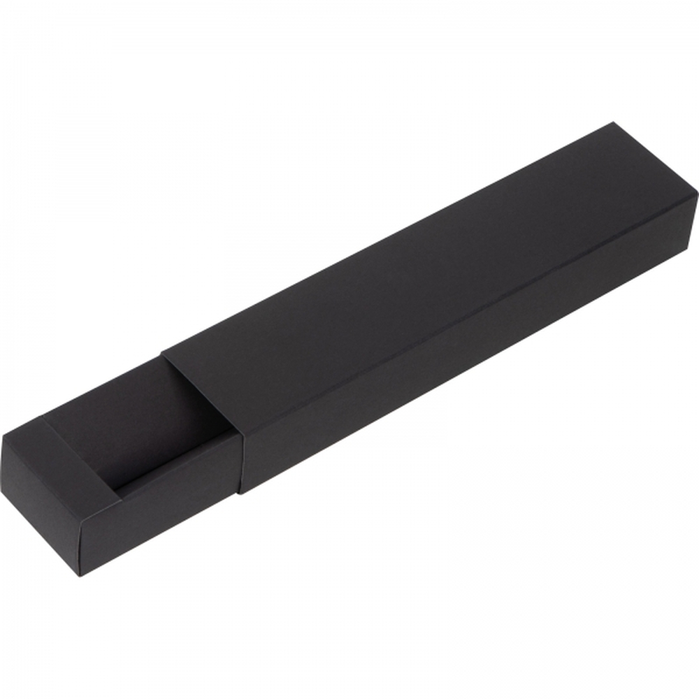 Black cardboard packaging for a writing instrument.