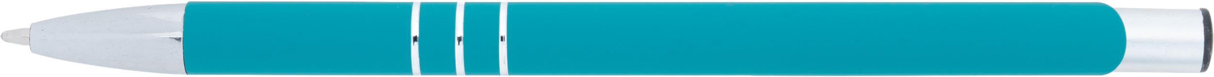 Stylo à bille en métal avec surface caoutchoutée pour un toucher doux, encre bleue. Emballé sous plastique.
