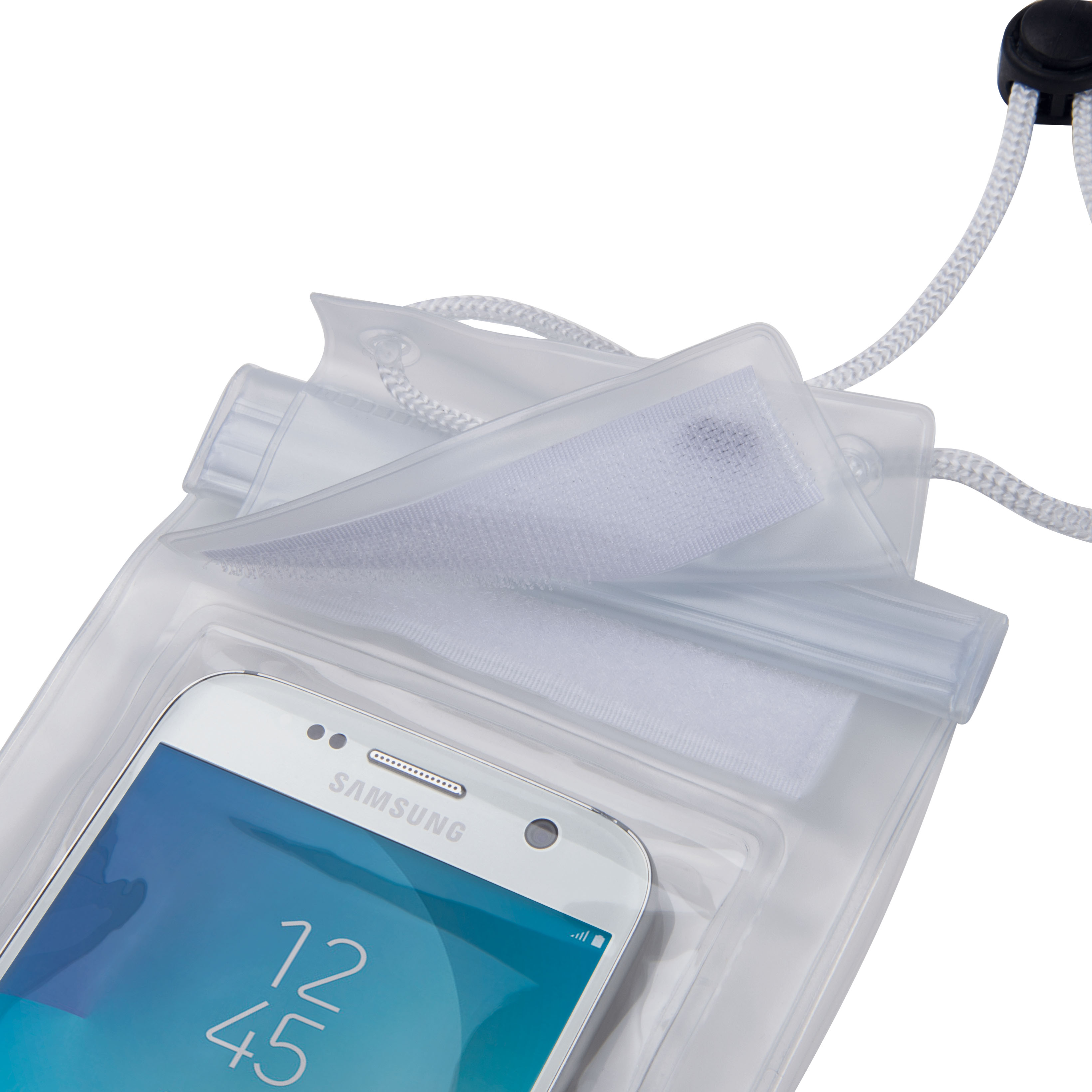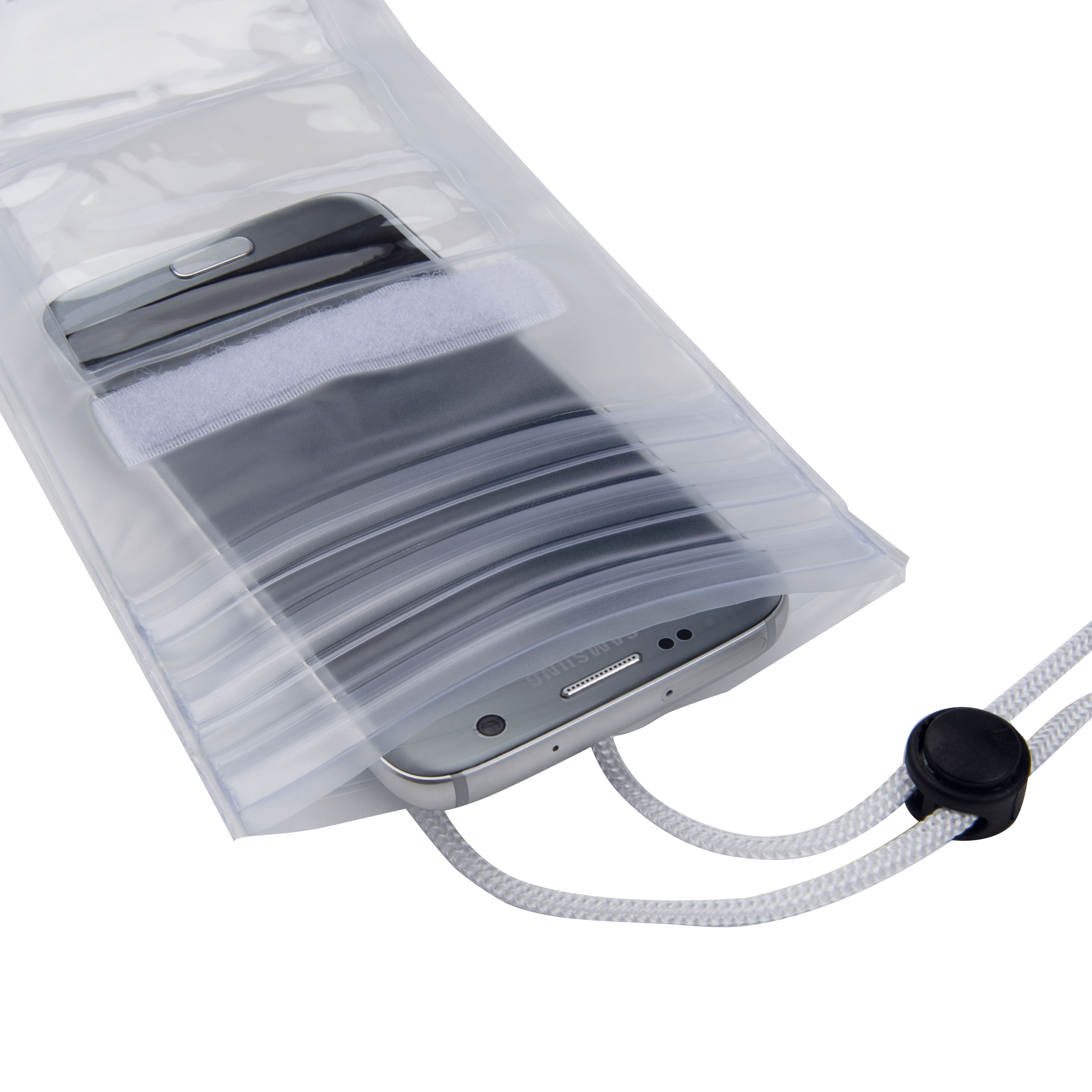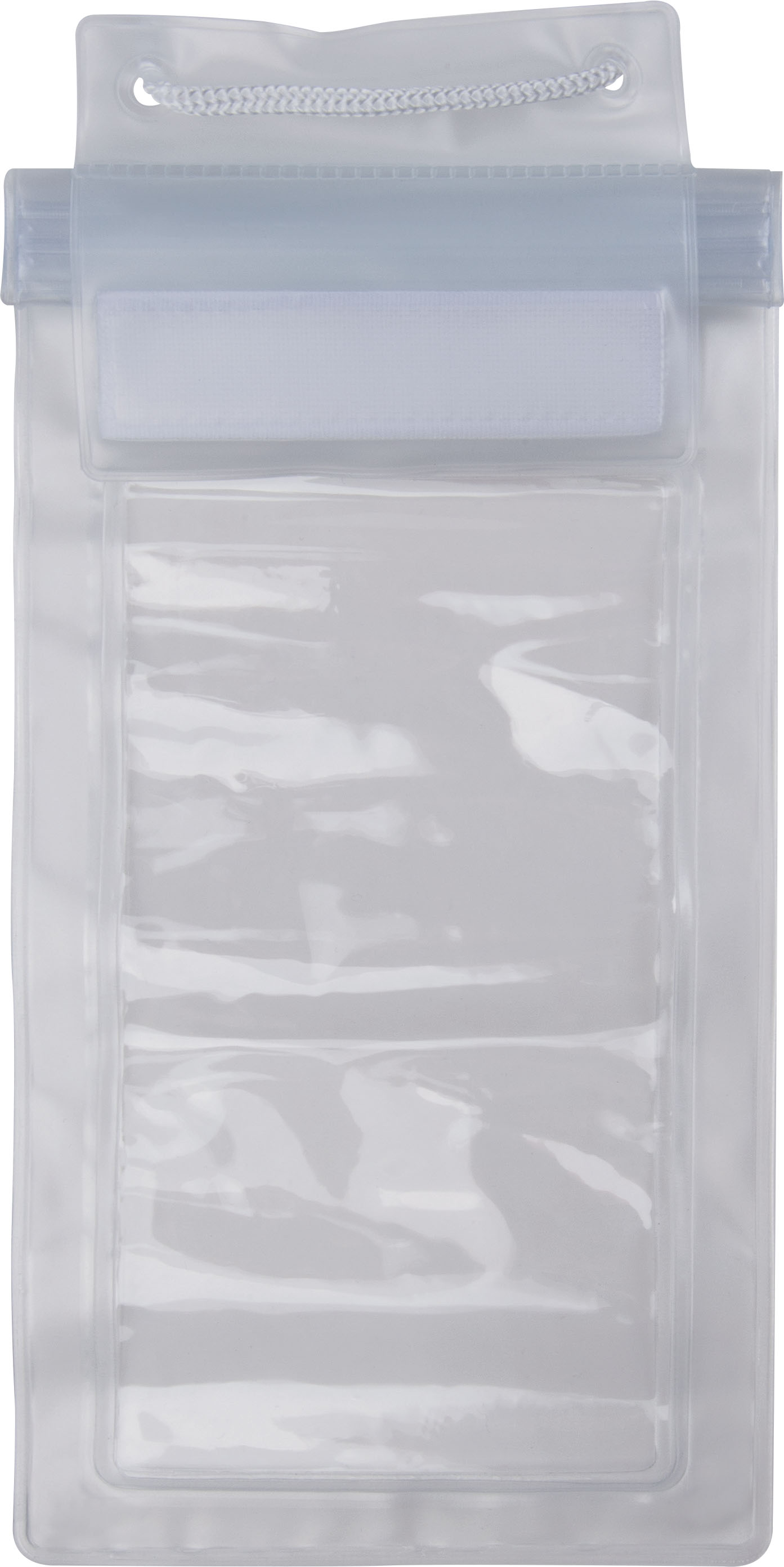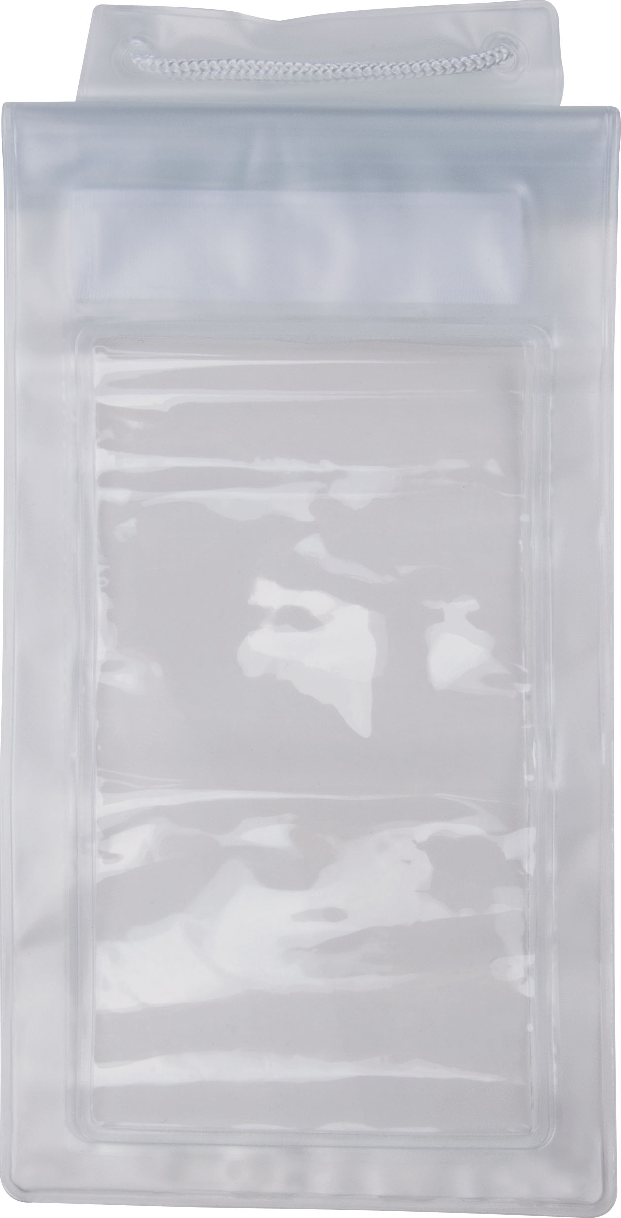 Un étui en PVC avec une ficelle, fermeture hermétique, emballé dans un poly-sac.