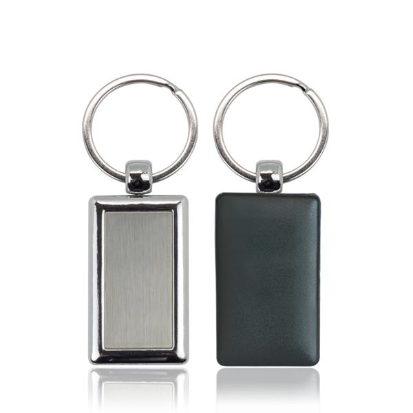 Rectangular key ring of metal and plastic