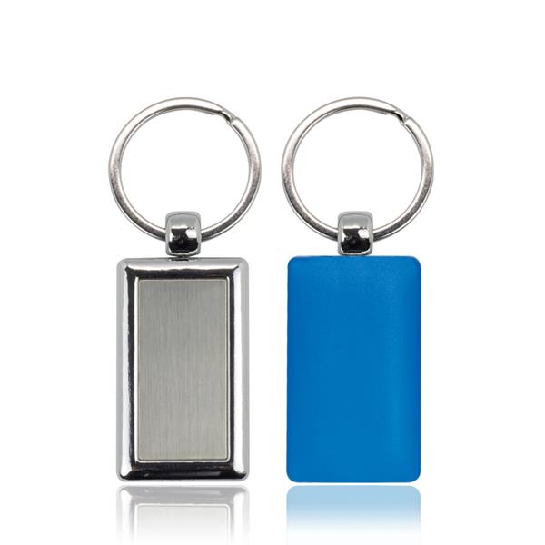 Rectangular key ring of metal and plastic