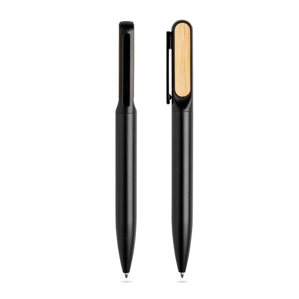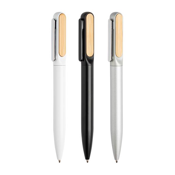 Metal ball pen with bamboo details