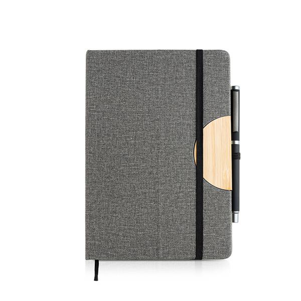 A5 block in linen, with bamboo detail for mobile phone holder